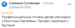 Хожу в Первую Профессорскую давно, и по графику было удобно записаться к Кристине Сергеевне. Прекрасно сделала мне чистку! Аккуратно, небольно, основательно. Хороший специалист! Хотя в этой клинике плохих и не бывает. очень ее рекомендую своим друзьям и знакомым